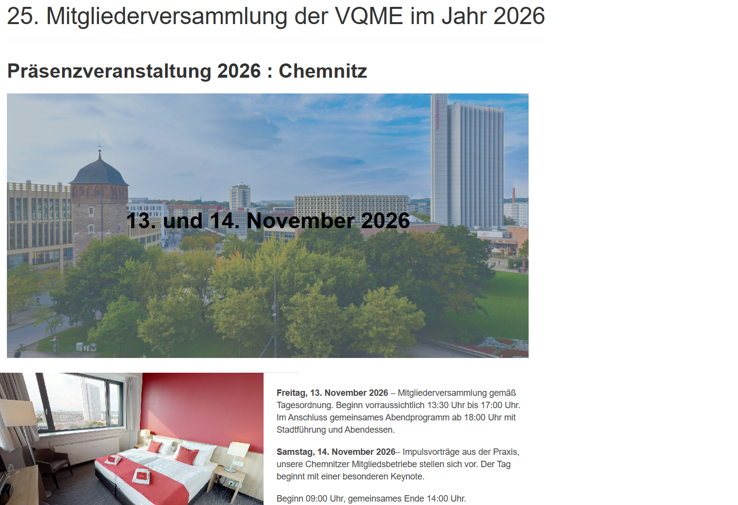 Ticket berechtigt zur Teilnahme an der VQME-Mitgliederjahresversammlung 2026.